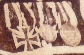 décoré : Sous ses médailles, il arbore un Dienstauszeichnung de type "Schnalle" de 3e Classe (bords noirs), décerné aux Sous-Officiers Prussiens pour 9 années de bons service (le "Schnalle" sera remplacé en 1913 par une médaille). |