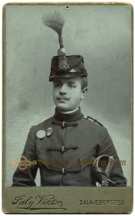 On remarque aussi que la cocarde porte le chiffre à la Hongroise, "1FJ" (les troupes Autrichiennes portant elles un "FJ1"). Les